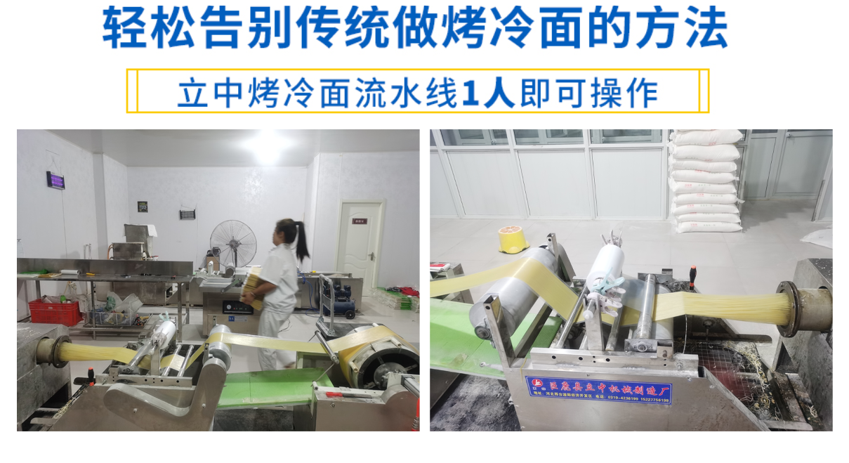 立中烤冷面流水線機(jī)器設(shè)備LZ-300-9型號保證一個人能夠正常生產(chǎn)操作制作烤冷面